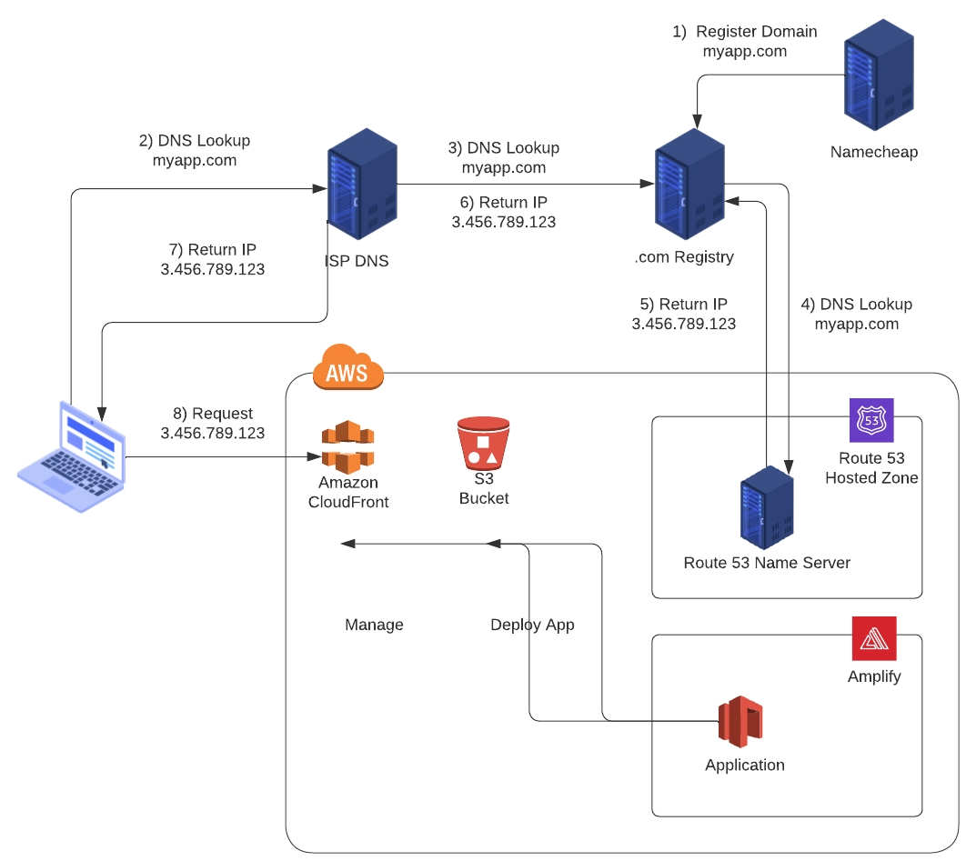 Behind the scenes, AWS Amplify orchestrates several different AWS services to build, deploy and manage your application.